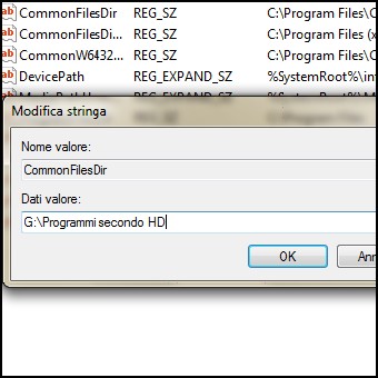 | 3. Tra le entrate presenti in corrispondenza della chiave selezionata, individuiamo la voce ProgramFilesDir che, come possiamo facilmente vedere nella colonna Dati, risulta valorizzata a C:\\Programmi. Facciamo doppio clic su di essa ed attendiamo l’apertura di una nuova finestra opzioni. 4. A questo punto, nella finestra Modifica Stringa, in corrispondenza della voce Dati Valore, digitiamo il nuovo percorso della directory predefinita per la localizzazione dei nuovi programmi che andremo ad installare. Clicchiamo su OK e chiudiamo l’editor di registro. Alla prossima installazione di qualsiasi programma noteremo che l’impostazione è stata cambiata, per come desiderato. | ||