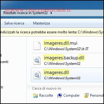 | 1. Come prima cosa dovremo assumere le proprietà della DLL imageres. Per farlo scarichiamo questo archivio e, con un doppio clic uniamo la chiave Assumi Proprietà Super Administrator.reg al registro di configurazione di Windows. Nel caso abbiate il UAC abilitato confermate l’azione rispondendo SI e nelle due finestre successive cliccate nuovamente SI/OK. 2. Ora portiamoci in C:\\Windows\\System32 e nella casella di ricerca di windows explorer digitiamo imageres.dll per individuare con rapidità la libreria interessata. Clicchiamo con il tasto destro del mouse sulla medesima e selezioniamo la voce Assumi Proprietà Super Administrator per avere il pieno controllo ed effettuare le modifiche necessarie senza dover seguire nessuna regola o permesso. | ||