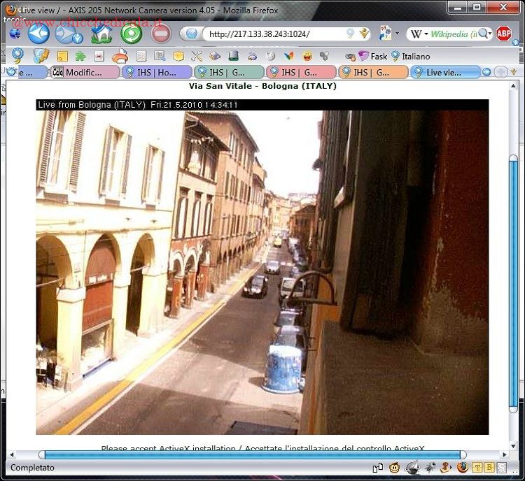 | 3. Con un clic sulla stringa si accede a una nuova pagina che riporta una breve descrizione e il link. Selezionandolo, viene visualizzata la pagina di ricerca di Google, cioè i link a tutte le Webcam connesse e prodotte da Axis. Cominciamo quindi a cliccare su ogni collegamento alla ricerca di una IPCam pubblica. 4. Per accedere a una Webcarn potrebbe essere necessario installare un programma di controllo. Per farlo si clicca su fare clic qui per installare il seguente controllo ActiveX e poi su installa ActiveX. L’installazione dell’ActiveX parte con un clic su Installa. Poi bisogna selezionare I accept the Licenze agreement e confermare con OK. | ||