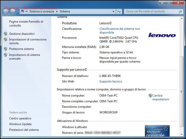 | 6. Durante l’installazione vengono aggiunti automaticamente i file presenti nella cartella “$oem$“, in silent viene verificata l’edizione che si sta installando e il brand del BIOS. Conseguentemente viene applicato il logo OEM, il certificato (xrm-ms) e il Product Key corrispondenti a quel Brand. Portandosi nelle Proprietà di Sistema si noterà la copia completamente attivata in versione OEM. \t\t NOTA: Non essendo “trapelate” le chiavi di tutti i produttori OEM, in caso l’hack rilevi una chiave non disponibile per impostazione predefinita applicherà quella “Acer”. | ||