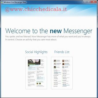 | 1. Una volta installato il nuovo Messenger, non lo si deve avviare (se lo si è fatto bisogna uscire). A questo punto si installa un secondo software, scaricabile dal seguente indirizzo. Una volta scaricato, si avvia con un doppio clic e si porta a termine l’installazione. 2. Adesso sì, che è il momento di avviare il nuovo Messenger: se non è fatto automaticamente, si seleziona Start/Tutti i programmi/Windows Live/Windows Live Messenger Beta. Una schermata di Welcome to the new Messenger da il suo vistoso, e festoso, saluto. Da qui, è bene cliccare per prima su Friends List, giusto per prendere la mano. | ||