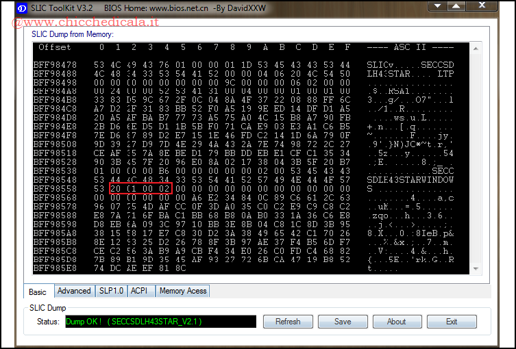 COME VERIFICARE E CONTROLLARE LO SLIC DEL BIOS PER L’ATTIVAZIONE OEMScarichiamo il software SLIC Toolkit V3.2, avviamo il programma con un doppio clic sull’eseguibile SLIC_Toolkit_v3.2.exe, spostiamoci nella sezione Basic e verifichiamo le informazioni nella sezione SLIC dump from memory. La schermata mostrerà con esattezza lo SLIC del BIOS in nostro possesso: NOTA: Disabilitare, disinstallare eventuali crack o loader installati sul PC. | ||