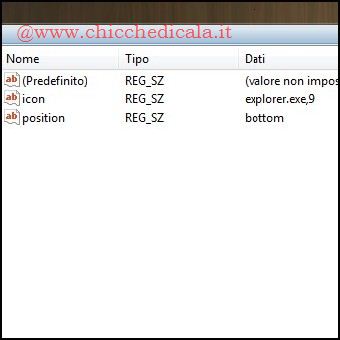 3. Per impostare un icona al comando, evidenziamo la chiave “Termina Processo” e nel riquadro di destra, creiamo un Nuovo / valore Stringa nominandolo Icon, successivamente con un doppio clic digitiamo explorer.exe,9 in Dati Valore e confermiamo con OK. Per impostare la posizione del comando nel menu contestuale, creiamo un nuovo valore Stringa nominandolo Position e impostiamo il suo valore a: