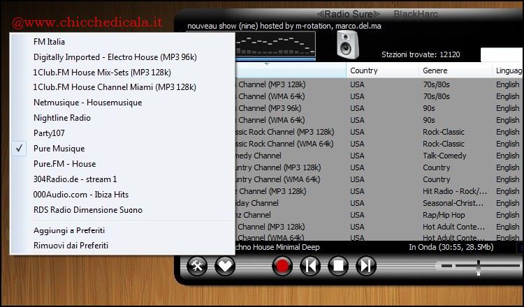 | 3. Quando individuiamo una Radio interessante possiamo inserirla nei preferiti per poterla avviare senza la necessità di effettuare una nuova ricerca nella lunga lista. Sintonizziamoci su una delle radio e clicchiamo il pulsante Preferiti. Nel menu scegliamo Aggiungi ai preferiti o Rimuovi dai preferiti se vogliamo toglierla dalla lista. | ||