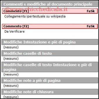 | Molto spesso un file di Word deve passare attraverso varie revisioni, operate da persone diverse. Per questo motivo può risultare utile l’opzione “Commento”, che permette di collegare eventuali annotazioni alle parti di testo cui fanno riferimento, e mostrarle sotto forma di fumetto, o magari di finestra a scomparsa. Si potranno poi far apparire le note passando il puntatore del mouse sulla parte di testo “da rivedere”.Così facendo, chiunque aprirà il documento potrà osservare le annotazioni e sapere chi le ha inserite. | ||