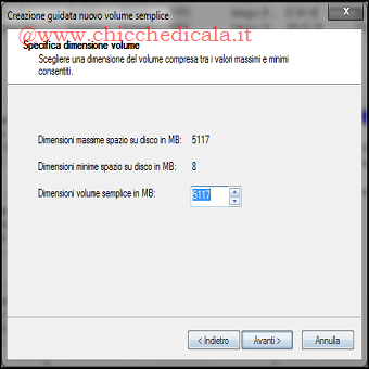 | 5. Per creare un volume nello spazio non allocato clicchiamo col tasto destro del mouse e selezioniamo “Nuovo volume semplice”. 6. Cliccando due volte su Avanti si assegnerà all’unità la massima dimensione disponibile. | ||