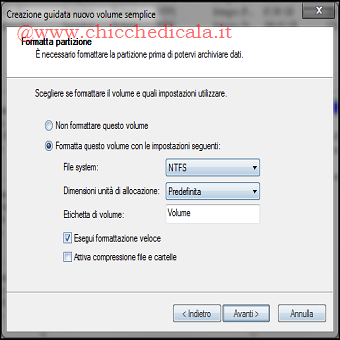 | 7. Assegnare la lettera unità | 8. Con quale file system ? | |