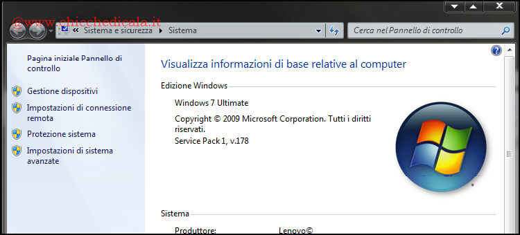| 5. Spostandosi nella Proprietà di sistema noteremo la voce aggiunta Service Pack 1 nella sezione Visualizza Informazioni di Base Relative al Computer. | ||