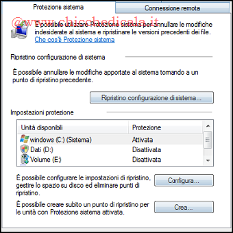 | 1. Prima di procedere con l’installazione del Service Pack 1, è bene creare un punto di ripristino che ci permetta di riportare il sistema operativo allo stato originario se qualcosa dovesse andare male. Andiamo nel Pannello di Controllo/Sicurezza e \t\tSistema/Sistema e clicchiamo Impostazioni di Sistema Avanzate. Nel box visualizzato spostiamoci nella sezione Protezione di Sistema. 2. Nel pannello Protezione di sistema clicchiamo sul pulsante Crea che troviamo in basso a destra. Nella casella di testo che appare, digitiamo il nome che vogliamo dare al punto di ripristino, quindi clicchiamo su Crea per avviare la procedura di creazione. Al termine comparirà il box Protezione sistema. | ||