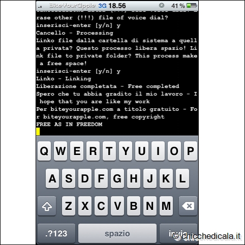3. FreeMyiPhone è un Tweak sviluppato da Bite Your Apple che va cancellare file dal sistema inutili. FreeMyiPhone va scaricato da Cydia tramite la repo di Bite Your Apple ma poi bisogna eseguire questi comandi da terminale: