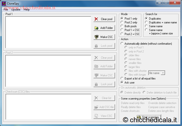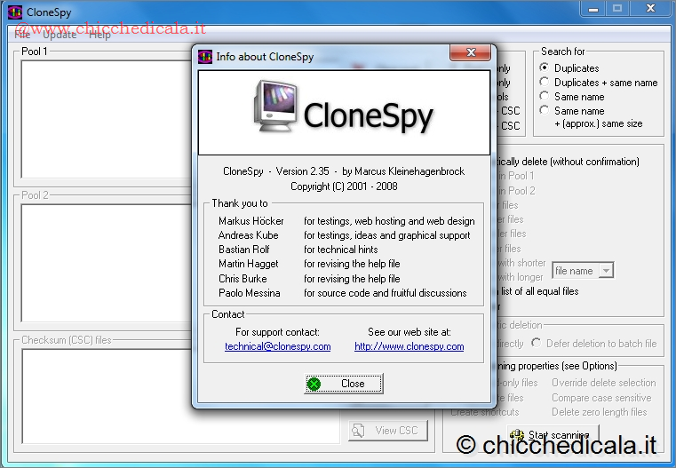 ELIMINARE FILE DOPPI DA COMPUTER CON CLONESPYNOTA: Clicca sule immagini per ingrandire. | ||