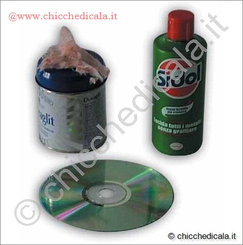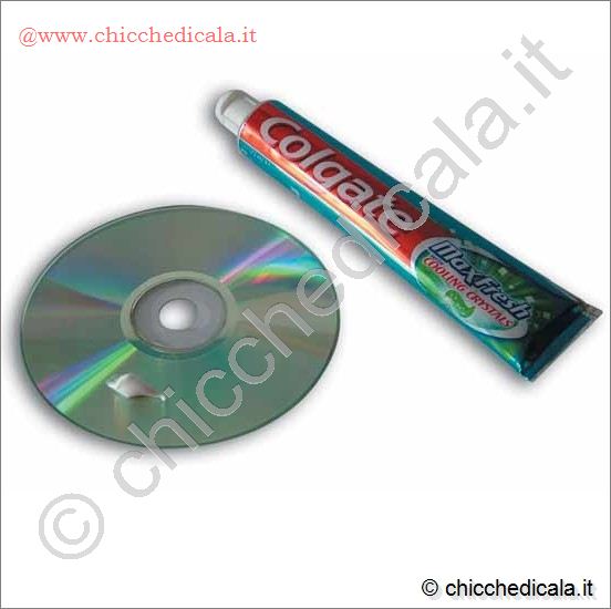 | 3. Il bicarbonato di sodio è comunemente incluso in molti dentifrici: è un blando abrasivo e, come detto in precedenza, consente di eliminare o almeno di ridurre, dai denti, la placca più resistente e piccole quantità di tartaro. Il bicarbonato, utilizzato sul supporto ottico in sospensione nell’acqua, garantisce un buon risultato. Le proporzioni, stabilite più o meno a occhio, sono di un cucchiaino di bicarbonato per due cucchiai d’acqua. Ottenuta la sospensione, bagnatevi un lembo dello straccio e iniziate a lucidare il disco. In questo caso l’effetto abrasivo è più elevato, per cui occorre fare molta attenzione: evitate di strofinare con troppa energia, se non volete rovinare definitivamente il disco. Per le operazioni di rifinitura, usate lo stesso straccio: potete intingerlo nella polvere per acqua da tavola, provvedendo all’operazione finale mentre avviene l’effervescenza. 4. Vediamo come usare prodotti specifici per la lucidatura. Si tratta, nella maggior parte dei casi, di sospensioni (acquose o in solventi/idrocarburi) di particelle finissime, naturali o sintetiche, con funzione abrasiva. I tipici prodotti di questo genere sono quelli destinati alla pulitura dell’ottone o dell’argento. Fate attenzione: scegliete quelli a pasta finissima, per evitare di peggiorare le cose. Anche in questo caso diluite il prodotto, effettuando aggiustamenti progressivi. I prodotti specifici per l’argento, specie quelli già pronti (in forma di ovatta imbevuta) sono i più adatti. Potete anche usare un prodotto per la lucidatura della vernice delle auto, sempre diluito. Da sconsigliare decisamente la pasta abrasiva da carrozziere, che contiene granuli di pomice, troppo aggressivi per la durezza del policarbonato. | ||