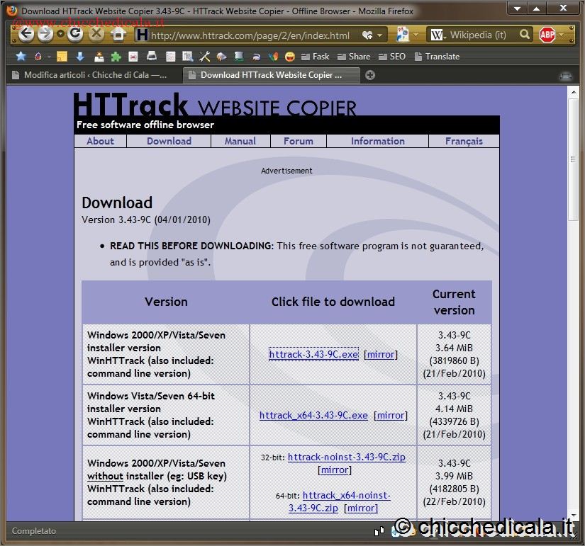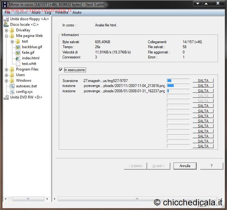 COME SCARICARE UN INTERO SITO WEB E CONSULTARLO A MODEM SPENTONOTA: Clicca sulle immagini per ingrandire | ||