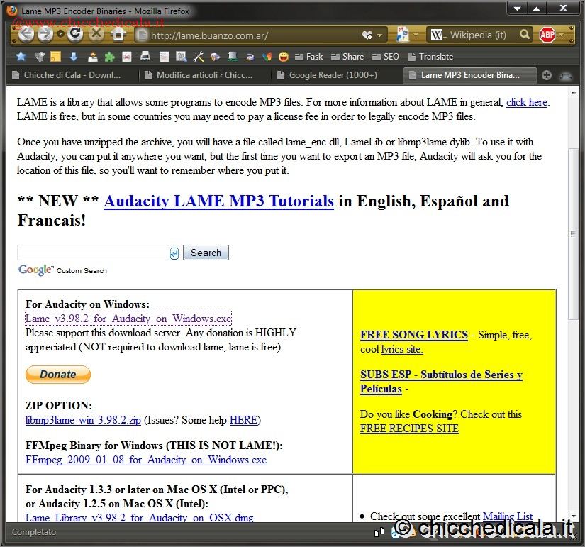 | 1. Download e installazione | 2. Installazione Codec LAME | |