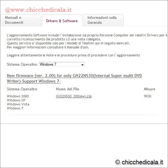 E MEGLIO SAPEREPer mettere in pratica quanto spiegato nell’introduzione, procederò all’aggiornamento del firmware di un diffuso modello di masterizzatore di DVD: l’LG GH22NS30. La procedura è molto simile per tutti i produttori quindi niente paura. Nel caso abbiate più masterizzatori interni, è prudente scollegare temporaneamente quelli non interessati all’aggiornamento, per evitare che un malfunzionamento dell’utility di aggiornamento finisca per scrivere il firmware sul masterizzatore sbagliato, con conseguenze a volte irreparabili. NOTA: Clicca sulle immagini per ingrandire | ||