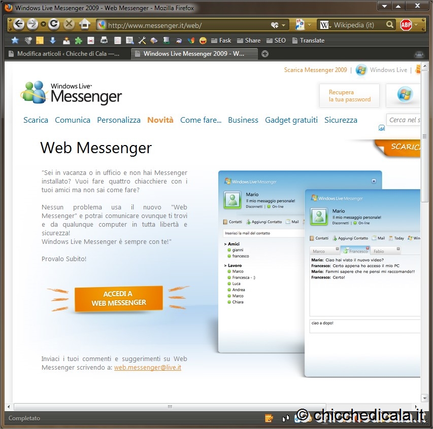COME UTILIZZARE WINDOWS LIVE MESSENGER ON-LINE PER ACCEDERE OVUNQUE TI TROVINOTA: Clicca sulle immagini per ingrandire | ||