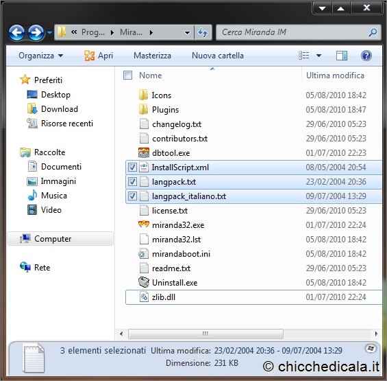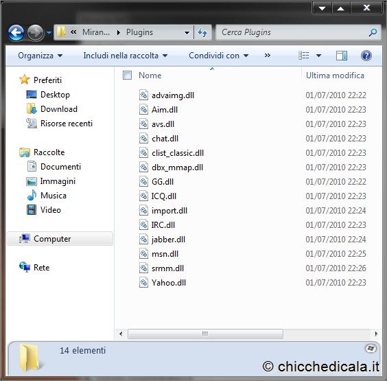 | 7. Potete quindi partire subito con un “trucchetto”: se avete, per esempio, più di un account MSN, potete creare più connessioni a questa rete semplicemente duplicando il plug-in corrispondente. Evidenziate il plug-in MSN, copiatelo (CTRL+C) e incollatelo su se stesso (CTRL+V), quindi rinominate la copia (per esempio come “MSN_Lavoro“). A questo punto riavviate il programma, tornate nell’elenco delle reti (come visto al punto 5): ecco la vostra nuova connessione MSN! 8. Installare un plug-in in Miranda IM è semplicissimo: basta scaricarlo all’indirizzo seguente (ce ne sono a centinaia), copiarlo nella cartella Plugins già vista al punto 7 e riavviare il programma. Non sono necessarie procedure di installazione, basta attivare il plug-in con un clic del mouse dalla finestra delle Opzioni, alla voce Plugins ed eventualmente configurare le sue opzioni. Alcuni plug-in richiedono a questo punto un ulteriore riavvio, ma nulla di più. | ||
