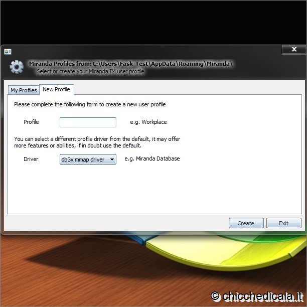 | 3. Appena prima del termine dell’installazione, prima che il programma si avvii, collegatevi a questa nuova pagina Web. Da qua potete scaricare i file con cui tradurre in italiano l’interfaccia utente di Miranda IM. Fate clic su Download al centro della pagina, quindi estraetene nella cartella di installazione di Miranda IM (C:\\Programmi\\Miranda IM). La traduzione è un’opera meritoria dello sviluppatore italiano Andrea Decorte. 4. Appena dopo l’installazione, viene chiesto di creare un profilo. Semplicemente, dovete indicare un nome unico sotto cui memorizzare tutte le impostazioni di Miranda IM. Con ogni probabilità, non vi capiterà praticamente mai di utilizzare il nome che state per indicare, per cui inserite il vostro nome, un vostro pseudonimo, o una qualunque sigla che vi rappresenti e premete il pulsante Create. | ||