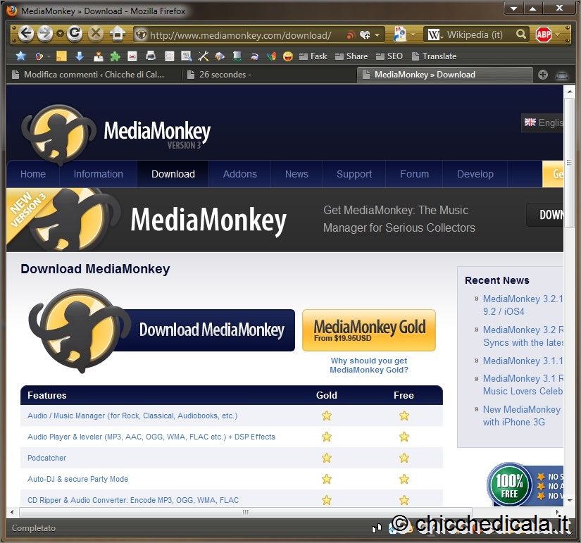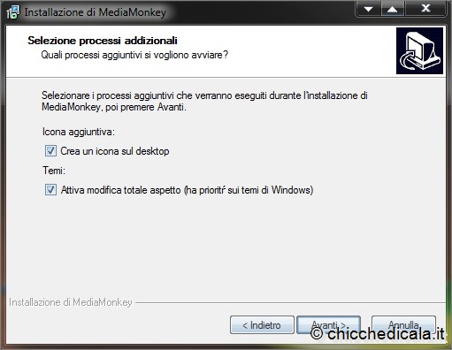 | 1. Aperta la pagina di download, ci si trova davanti una tabella che mette a confronto le versioni Free e Gold del programma: come molti software scaricabili da Web, anche MediaMonkey viene infatti distribuito in due versioni, una gratuita (la Free) e una a pagamento (la Gold). Scaricate la versione Free, è più che sufficiente. 2. L’installazione del programma non presenta particolari problemi. Le uniche domande inconsuete riguardano la richiesta di attivare la “modifica totale dell’aspetto” e l’associazione dei file al programma. La prima influenza solo l’interfaccia del software: se si attiva questa “modifica”, la finestra di MediaMonkey non avrà i colori e la grafica standard di Windows, ma potrà essere ridisegnata con uno dei temi disponibili (ce n’è anche uno grigio metallizzato, fortemente ispirato all’interfaccia di iTunes). | ||