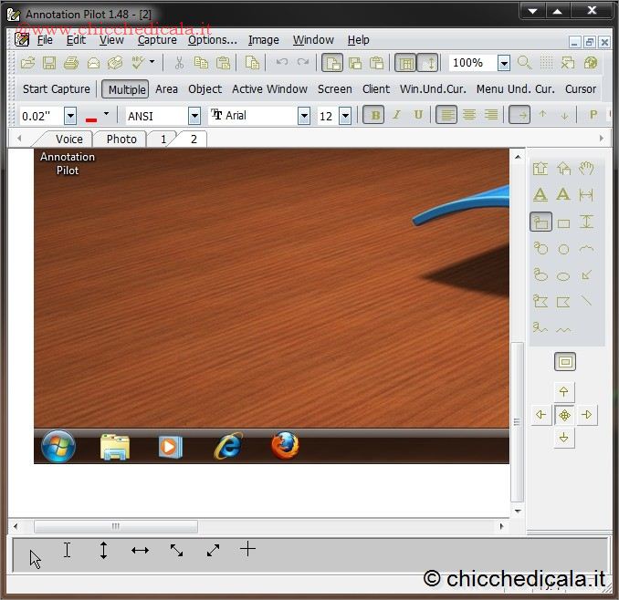 | Salvare in un file una “schermata”, un’immagine che appare sullo schermo, può essere molto utile. Per questa operazione esistono moltissimi programmi a pagamento, alcuni dei quali molto sofisticati, e altrettanti programmi gratuiti, quasi sempre poveri di funzioni. Il programma Annotation Pilot, che solo alcuni mesi fa era distribuito a qualche decina di euro, è diventato gratuito: è arrivato il momento di parlarne, di provarlo. Il software, purtroppo solo in lingua inglese, è però molto semplice e, con un pò di pratica, permette di catturare tutto quello che vi passa per il desktop. | ||