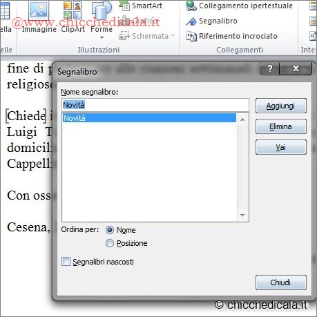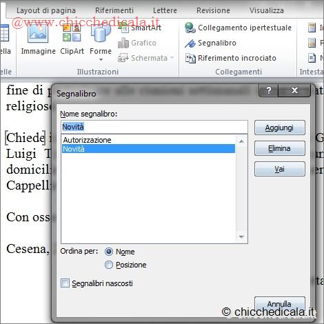 COME CREARE DEI SEGNALIBRI IN UN DOCUMENTO WORDNOTA: Clicca sulle immagini per ingrandire | ||