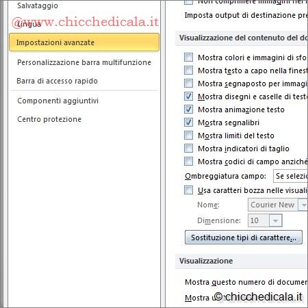 | 5. Se volete visualizzare i vari segnalibri di un documento, andate in File/Opzioni e, all’interno della finestra che si apre, fate clic sulla scheda Impostazioni Avanzate; scorrete la finestra e nella sezione Visualizzazione del contenuto del documento mettete un segno di spunta su Segnalibri. Laddove è stato inserito un segnalibro a una voce, il suo nome è visualizzato tra parentesi. Se il segnalibro è stato assegnato a una posizione, è visualizzato come puntatore a I. Le parentesi non vengono prese in considerazione in fase di stampa. 6. Per eliminare un segnalibro dovete andare in Inserisci/Segnalibro, selezionarlo nell’elenco e fare clic su Elimina. Se desiderate eliminare sia il segnalibro che l’elemento a cui è associato (per esempio un blocco di testo), non dovete fare altro che selezionare l’elemento con il mouse e premere il tasto CANC. | ||
