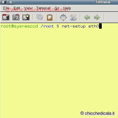 | 3. Sinceriamoci che il collegamento Internet sia attivo. Nel Terminale di SystemRescueCD diamo il comando net-setup ethO e premiamo Invio per stabilire la connessione alla Rete utilizzando la prima interfaccia di rete (chiamata ethO su Linux e corrispondente al modem/router). Comparirà una semplice interfaccia di gestione. 4. Spostiamoci con i tasti freccia tra gli elementi dell’interfaccia. Nella prima schermata premiamo Invio. Selezioniamo My network is wired e premiamo Invio. Quindi scegliamo Use DHCP e confermiamo con Invio: useremo così il DHCP per fare in modo che il router assegni automaticamente un indirizzo IP al nostro computer. | ||