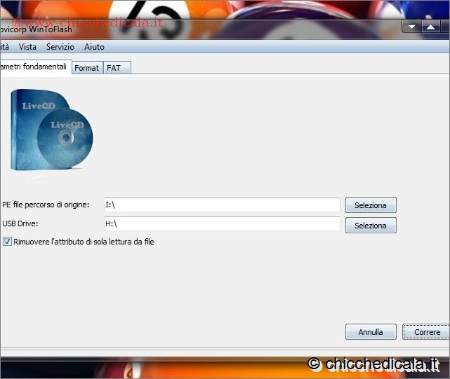 | 3. Dal momento che molti notebook non dispongono di lettore ottico montiamo il file ISO con Daemon Tools. Nel campo PE file percorso di origine specifichiamo l’unità ottica e nel campo USB Drive richiamiamo l’unità associata alla nostra chiavetta. Lasciamo invariati gli altri parametri e terminiamo questa fase, cliccando Correre. \t 4. Una finestra ci avvisa che è necessario formattare la chiavetta. Cliccando OK verrà avviata la procedura di formattazione dell’unità USB, con conseguente eliminazione del contenuto. WinToFlash provvedere a copiare nel supporto USB i file presenti nel DVD di Windows. Al termine, avremo una chiavetta avviabile. Ora non rimane che procedere con l’installazione classica. Nel caso vogliate installare XP si procederà in questo modo mentre per Windows 7 in questo. | ||