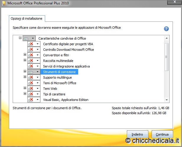 | 5. Per l’installazione è necessario avere il CD di Office o di Word o semplicemente portarsi nella pannello di controllo/programmi/Programmi e funzionalità evidenziare la voce relativa a Office e cliccare sul pulsante Cambia. Dalla finestra “Modifica installazione di Microsoft Office..” spuntare l’opzione Aggiungi/Rimuovi Caratteristiche e successivamente installare gli strumenti di correzione. Riavviare word per rendere operative le modifiche. 6. Ora è il momento di effettuare il controllo sul testo. Fate clic su Revisione e poi su Controllo ortografia e grammatica. Apparirà la finestra relativa a questa funzione. Il possibile errore appare scritto in rosso: per ignorare la segnalazione di errore fate clic su Ignora questa volta. Per non considerare nessuna correzione fate clic su Ignora tutto. Altrimenti è possibile accettare uno dei suggerimenti proposti da Word, selezionandolo, e facendo poi clic su Cambia. Terminate tutte le correzioni, Word vi avviserà con una piccola finestra di dialogo (Controllo ortograficoterminato…). | ||