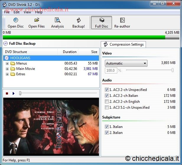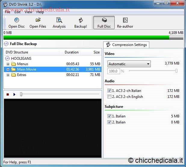 | Mettiamo subito le cose in chiaro: effettuare una copia di sicurezza dei propri film in DVD è legale. Non lo è copiare i film e darli a qualcuno che non possiede l’originale, o peggio ancora venderli. Seconda premessa: non è possibile superare i sistemi “anticopia”. In tutti gli altri casi, la copia di sicurezza è un diritto. In questo articolo, vi proponiamo una guida all’utilizzo di un software che fa proprio questo: copia i dati contenuti in un disco originale, e li prepara per la scrittura su un disco vergine (da eseguire poi con un programma apposito, come InfraRecorder). Tutto automaticamente. Il programma, molto conosciuto in Rete, si chiama DVDShrink e, dopo aver visto come estrarre una breve clic da un DVD, vediamo come realizzare copie di backup. | ||