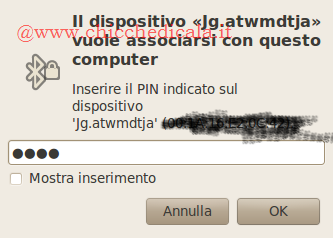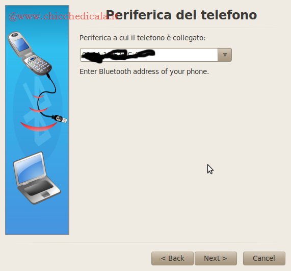 | 7. Dopo aver effettuato la scansione dei dispositivi disponibili, Wammu ne riporta la lista. Scegliamo il telefono che vogliamo gestire e andiamo avanti. 8. A questo punto, il programma ci chiederà il pin che abbiamo impostato sul telefono per provare la connessione. | ||