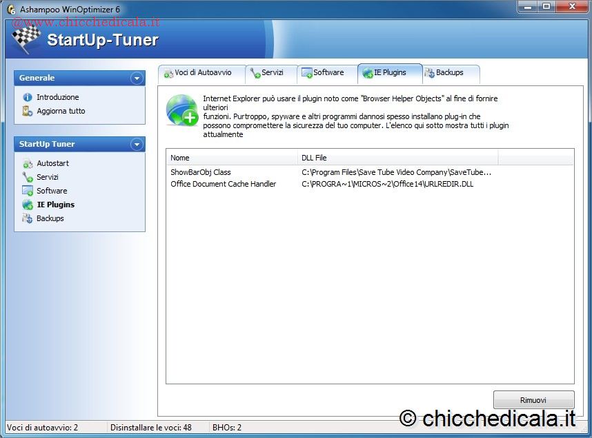 | 5. L’ambiente è stato sapientemente suddiviso in base ai tipi di software da analizzare. Per esempio è possibile intervenire sui servizi, ma con prudenza, per evitare possibili blocchi di sistema o, nei casi più gravi, impossibilità di avvio (boot). 6. È opportuno verificare, prima di abbandonare questa sezione, anche la presenza dei plug-in di Internet Explorer. Tra questi si possono annidare codici maligni o comunque sospetti. In caso di dubbio, è sempre possibile cercare su Internet informazioni sul modulo e sulle sue funzioni. | ||