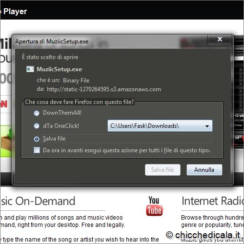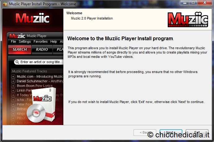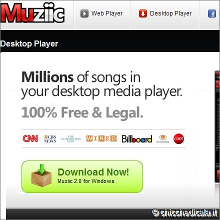 1. Per scaricare il programma collegatevi all’indirizzo Web www.muziic.com . Fate clic sul pulsante Download Now. 2. Si avvia così lo scaricamento del file di installazione, un eseguibile da 11,08 Mb. | ||