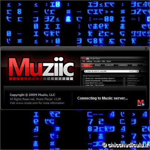 | 5. Il programma cerca di connettersi al server: è per questo che il vostro collegamento Internet deve essere sempre attivo. 6. L’interfaccia di Muziic sembra caotica: occorre familiarizzare con le varie sezioni. In basso a sinistra c’è il vero e proprio riproduttore musicale. Per ascoltare i brani, potete navigare tra i generi che trovate sulla sinistra. Usate i tasti per governare la riproduzione: potete mettere in pausa, riascoltare la canzone, passare alla successiva. | ||