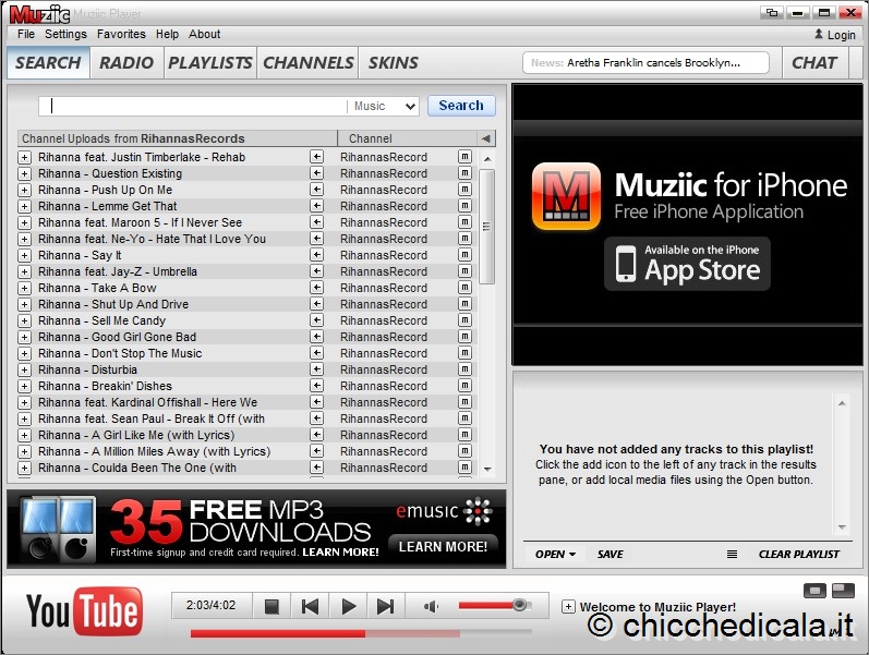 Ascoltare tutta la musica di YouTube com Muziic Player