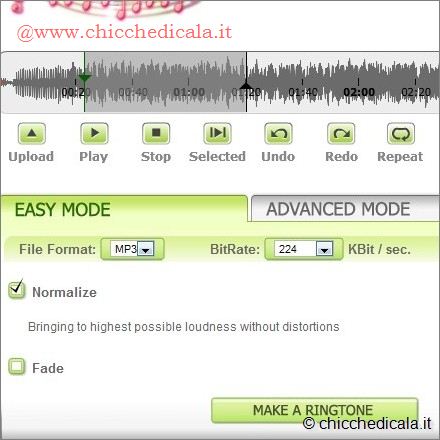 . Comparirà immediatamente la schermata di composizione della suoneria, che verrà realizzata a partire da un file musicale salvato sul PC (o su altri dispositivi collegati al computer).