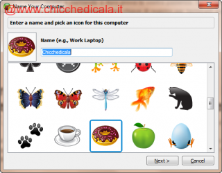 | 6. Qui devi solo scegliere un nome , lo stesso che ti comparirà on-line in caso di condivisione dei file di cui effettui il backup. |