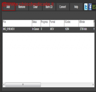 | 4. A questo punto non resta che cliccare su Convert per convertire e successivamente su Burn Cd per masterizzare con i migliori codec audio e video messi a disposizione dalle librerie open source |