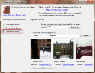 Se sei un frequentatore accanito di facebook, può senz’altro tornarti utile una bella chicca che ti consente di scaricare in un clic interi album del social network più famoso al mondo. Con FbDownloader puoi salvare sul tuo PC tutte le foto in cui sei taggato, tutti gli album del tuo profilo (utilissima se hai perso le foto e non sai come recuperarle), e anche tutti gli album di un tuo amico, tutto in un clic, una chicca per veri curiosi!