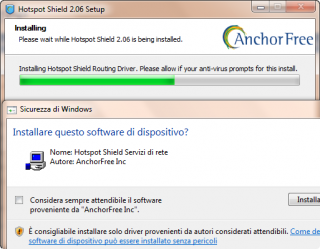 1. Installazione di Hotspot Shield | 2. Avvio installazione |