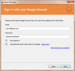 | 3. Per caricare la tua libreria devi collegarti a Google Music inserendo i dati di login. |