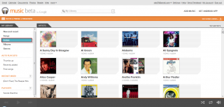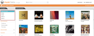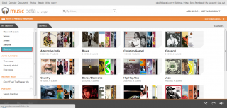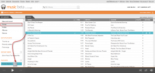 | 1. Ci siamo, ecco come si presenta il Player online di goole con tutte le nostre canzoni caricate. Sulla sinistra abbiamo il frame dei comandi dove possiamo gestire la libreria, le playlist (anche automatiche) e i Mixes (scelti sulla base dei voti che diamo alle canzoni) |