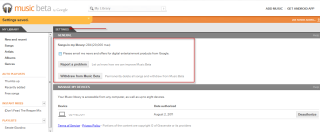 | 7. Nelle impostazioni di Google Music puoi verificare nel tab Generale il numero di canzoni e gestire le opzioni quali quelle che ti consentono di cancellare tutta la libreria. |
