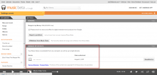 | 8. Nel riquadro dispositivo puoi veriificare tutti i pc o palmari connessi a Google Music. Bisogna infatti ricordarsi che i possessori di smartphone e tablet android possono godere di un’applicazione diretta per la gestione dello streaming di Google. E’ presumibile che presto verrà rilasciata un’applicazione anche per iphone. |