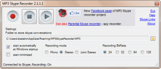 chiama MP3 Skype Recorder e funziona sia manualmente che automaticamente, non appena avviamo una normale conversaione, o conferenza, si avvierà una