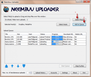 Detto questo, è ovvio che non vogliamo neanche perfdere decine di minuti per fare tanti upload su altrettanti siti di file hosting. La chicca di oggi ,Neembuu Uploader, consente di inviare contemporaneamente i files da condividere sui migliori 25 servizi di file hosting. I servizi collegati alla chicca sono 2Shared.com, Badongo.com, DepositFiles.com, DropBox.com, Easy-share.com, EnterUpload.com, FileDropper.com, FileDude.com, FileFactory.com, FileServe.com, FileSonic.com, HotFile.com, ifile.it, ImageShack.us, Letitbit.net, MediaFire.com, MegaUpload.com, RapidShare.com, SendSpace.com, ShareSend.com, UploadMB.com,Uploaded.to, Uploading.com, Wupload.com, ZShare.net. Vediamo in dettaglio come funziona e il vantaggio che offre questa chicca.