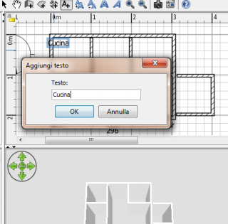 | 7. Per aggiungere testi alla piantina della casa, devi prima scegliere Piano > Aggiungi testi o selezionare lo atrumento Aggiungi testi. Per aggiungere un nuovo testo, clicca nel punto dove vuoi posizionarlo nella piantina della casa, poi inserisci il testo nel pannello che apparirà come mostrato qui sotto. Dopo che è stato creato un testo, puoi ancora cambiarne il contenuto facendo doppio click su di esso nella piantina. Puoi inoltre cambiare la sua misura e il suo stile con gli elementi di menù disponibili nel sottomenù Piano > Modifica stile testo. |