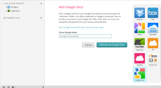 | 4. Cliccando su un servizio come Google Documents, ci viene richiesto di inseire un nome e successivamente potremo cliccare il bottone Authorize via Google Documents (per quasi tutti i servizi ci sarà un bottone analogo). |