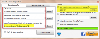 Allora come fare per proteggere l’accesso a questo file? Oltre che proteggere un file o cartella con password con una password, si può pensare di camuffare il documento prezioso nascondendolo in un’immagine. Inoltre, come maggiore sicurezza si potrebbe usare una password in assenza della quale dall’immagine non potrà essere estratto il file nascosto. Tutto questo lo si può fare con una chicca leggera, gratuita, semplice di nome Free File Camouflage.