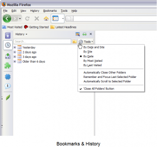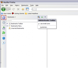 fissa (frame) dalla quale possiamo gestire in un solo clic tutte le funzionalità di firefox come Preferiti, Cronologia, Downaload, Componenti aggiuntivi, Codice Sorgente, Informazioni.